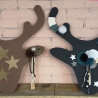 Ophangen op de deur, muur of neerzetten op tafel, kast. Ons mooie rendier. Je gaat je eigen kleur en stijl bepalen. Je maakt een paar pompoms of iets anders leuks, werkt met leer en zoekt versieringen erbij. Het rendier straalt straks in je woning